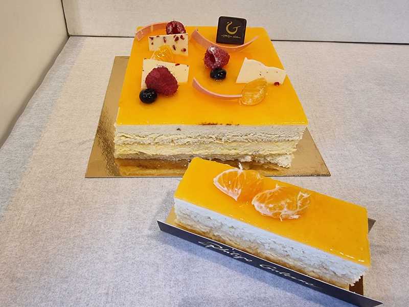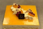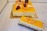 This surprising new entremet cake consists of a light and creamy vanilla bavaroise, a refined jasmine compote and a fresh orange bavaroise. No nuts or almonds are used in this cake, but it may contain traces.
